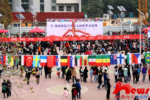 On the afternoon of November 24th, co-hosted by the Office of International Exchange and Cooperation as well as the International College of Chinese Language and Culture, the 9th. World Culture Day was held at the basketball court of Mulan Road in HNU. President Jiang Hongxin, vice president Li Dazhi, foreign students from over 40 countries including Russia, Thailand, Pakistan, Laos, South Korea and Japan, as well as representatives of teachers and students in China participated in the event.