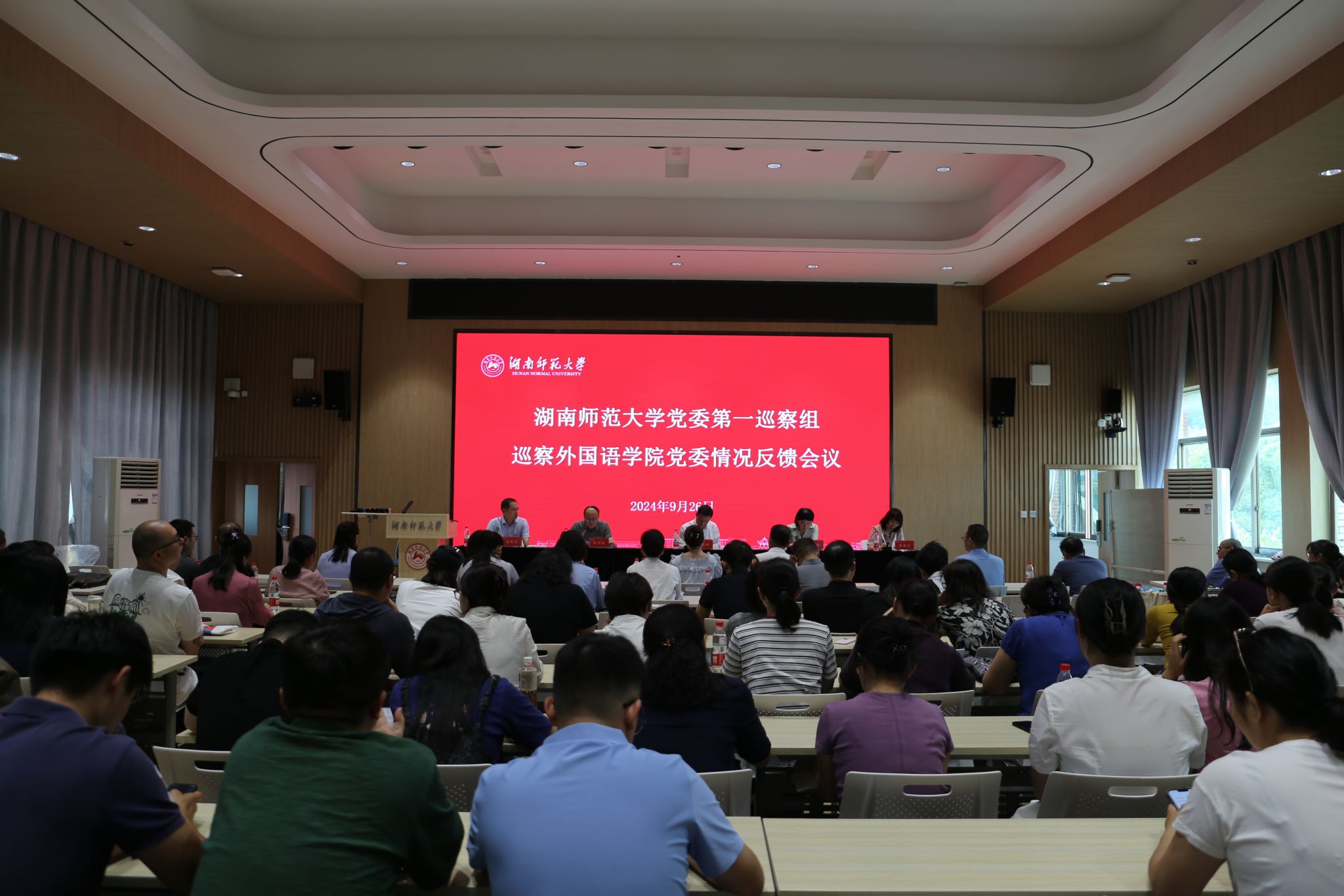 党委巡察办成员、学校党委第一巡察组、外国语学院党委领导班子、学院全体在校教职工、离退休教职工代表、学生代表等参加会议。