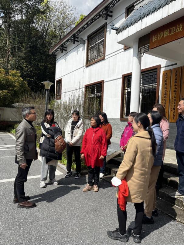 之后,教工三支部和多语种工会的成员们前往影珠山抗战陈列馆,教工三支部书记陈小法教授讲述了“新学期第一堂党课”,宣讲党的创新理论和在工作中的创新实践,解读党中央实施科教兴国战略和推进教育、科技、人才“三位一体”的重大部署,阐释高校对接服务湖南“三高四新”战略定位和使命任务的新思路新举措,引领教师们努力工作,为建设高质量高等教育体系贡献智慧和力量。