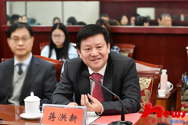 蒋洪新对大家的到来表示热烈欢迎,并简要介绍了学校办学历史、学科建设、人才引进等方面的情况。他充分肯定了此次会议召开的意义,并高度评价了蔡美花教授为我校作出的贡献。他说,蔡教授全职来校工作后,全身心投入我校“双一流”建设发展事业,在承担中联部、外交部、教育部等国家重大项目、服务国家重大需求方面发挥了重要作用。他希望与会专家给予我校更多的关心和支持,推荐更多的高层次人才,他表示,学校将全力做好服务工作,加大投入、深化内涵,强化复合型188金宝搏app下载,做好新型智库研究,积极对接国家发展战略,为民族复兴贡献智慧和力量。