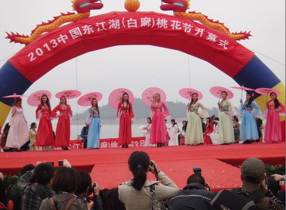 3月16日至17日,应资兴市政府、资兴市旅游局的盛情邀请,我校国际交流合作处选派了来自俄罗斯、美国、土耳其、哈萨克斯坦、乌兹别克斯坦等国的10名女留学生参加了“中国东江湖(白廊)桃花节”及“桃花仙子”比赛。