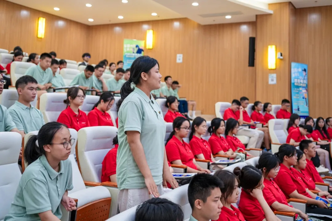 长沙市公安局天心分局网安大队副大队长梁慧讲述了自己从警多年的一线反电诈经历,从民警的视角分享了对于打击电诈的不易和决心,让大家真切地感受到网络诈骗的危害。在互动环节,她提出许多富有趣味的知识问答,并在现场发放礼品。随后她播放的自制网络安全宣传片《较量》,也赢得现场同学们的阵阵掌声。