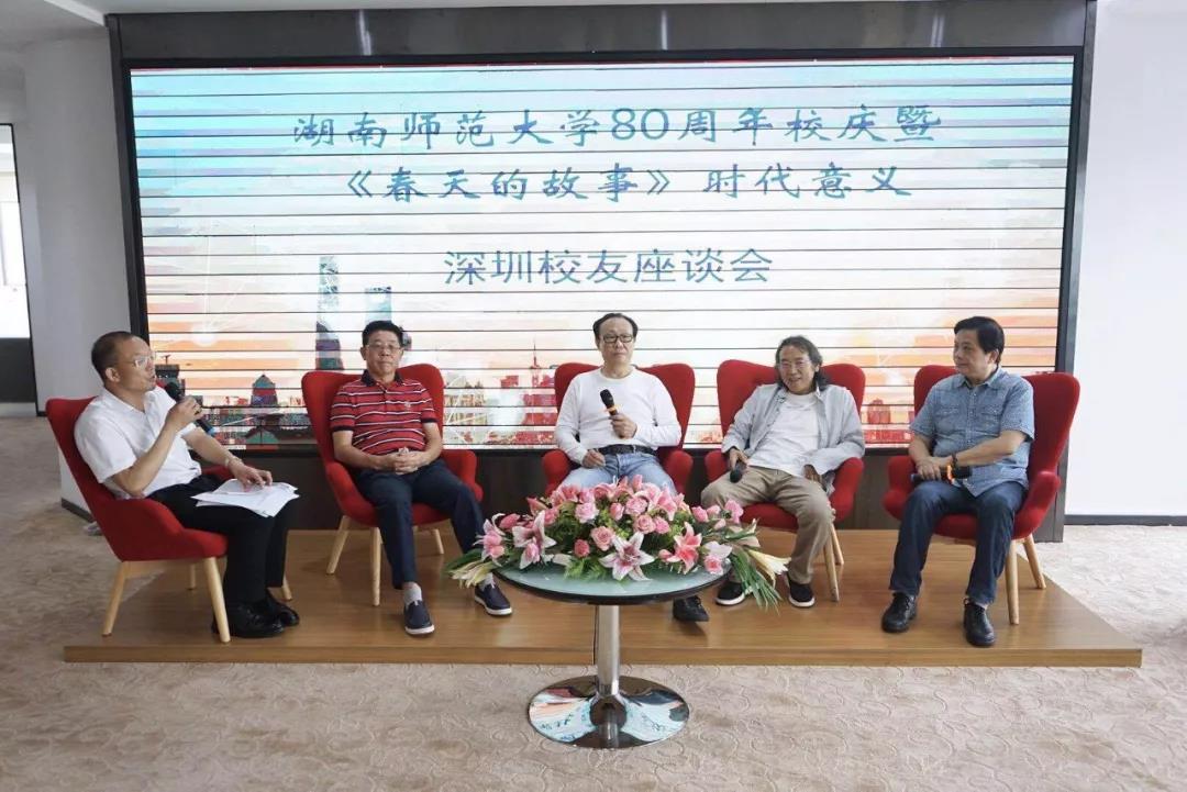 座谈会翻开了深圳改革开放的历史面貌,回忆了《春天的故事》创作中不为人知的故事,分享了湖南师大的深圳音乐人三十年来的酸甜苦辣。在轻松愉快的氛围中,与会者畅所欲言,思绪澎湃地共献了一场丰富的精神盛宴。《春天的故事》召唤每个个体,每一位校友撸起袖子不断出发,不断进取,续写故事,为国家改革开放贡献力量。大家呼吁,《春天的故事》在深圳开始,但是师大人可以把这个故事,把师大人的精神传播到祖国的大江南北去。