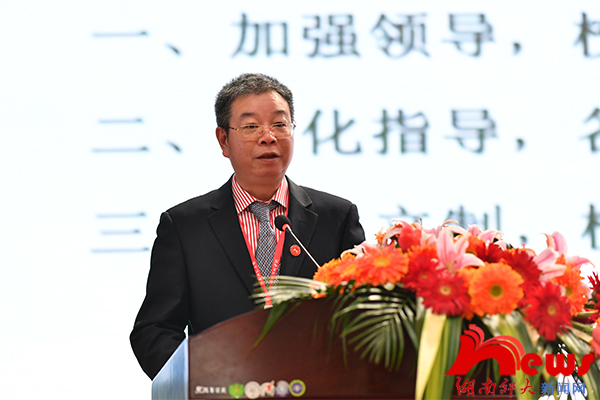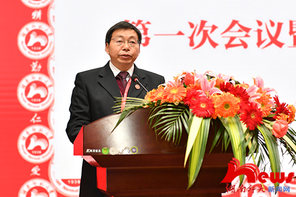 省教育厅副巡视员左清,省民政厅社会组织管理局副局长龙吉士,我校原党委书记张国骥,我校第三届校友总会理事会会长、原校长刘湘溶,我校校友陈大可院士、谭蔚泓院士、邵明安院士,省教育厅原副厅长、巡视员陈湘生,省教育厅原党组成员、省教育科学研究院原院长姜正国,我校原常务副校长卢岳华,中山大学公共卫生学院院长舒跃龙及我校全体在家校领导出席会议。
