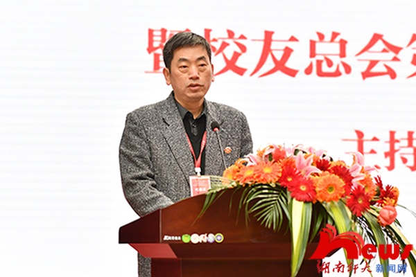 副校长周俊武作第三届校友总会工作报告。他从理顺工作机制,不断完善校友工作体系;加强沟通联络,不断提高服务校友质量;加强宣传动员,不断凝聚校友助推学校发展;加强自身建设,不断提升校友工作水平等方面回顾了学校近年来的校友工作。他表示,学校将进一步完善校友组织建设,切实增强服务意识,切实加强信息化建设,切实围绕中心服务大局,切实加强自身建设,提升校友工作质量。他希望广大校友一如既往地关心母校、支持母校,与母校共甘共苦、同舟共济,坚定推进母校发展。