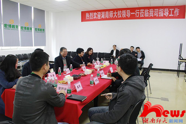 会后,副校长周俊武一行还参观走访了校友企业——湖南宏博教育科技发展有限公司,商讨共建“师大家教服务中心”项目。