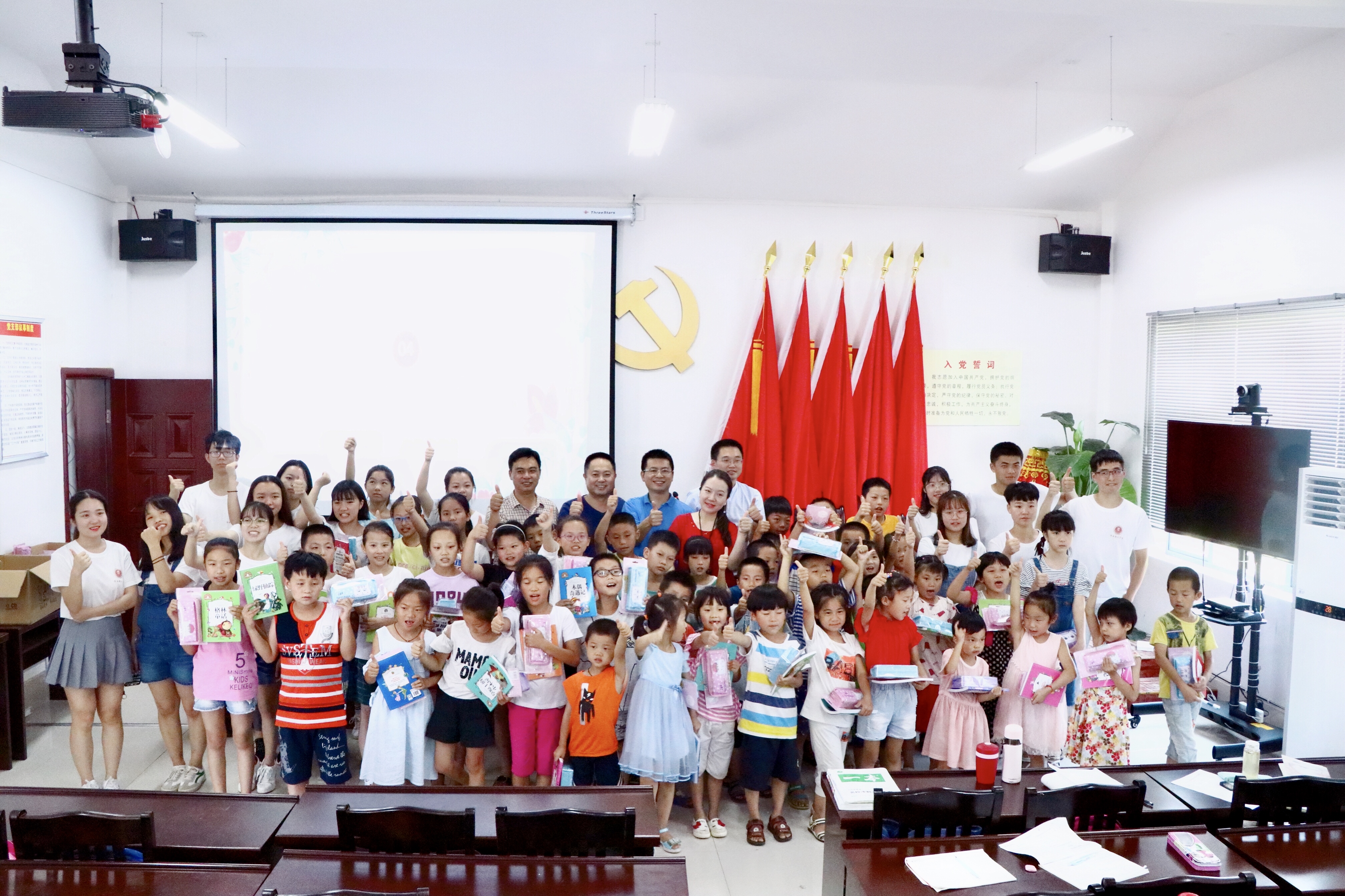 在授牌仪式结束后,亚太杰出女性联合会副会长、管理学博士后、青年企业家吴丹校友代表“天丹爱心公益基金会”对双江口镇中心小学的贫困学生进行助学金帮扶,希望以此解决孩子们的学习困难。随后,吴丹校友和领导老师们一起将带来的爱心书籍及文具赠给当地的60位少年儿童,鼓励他们拥抱梦想、自强不息,未来成为国家与社会的栋梁之材。